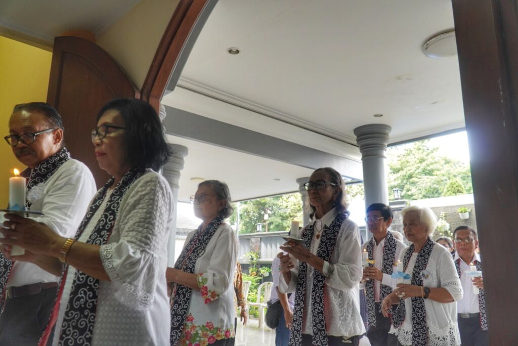 Rangkaian acara Perayaan Syukur Pesta Nama Paguyuban Lansia Simeon Hanna Dekanat Utara Keuskupan Bogor yang diawali dengan perarakan vandel paroki-paroki yang berada di wilayah Dekanat Utara dan dilanjutkan dengan perarakan lilin.