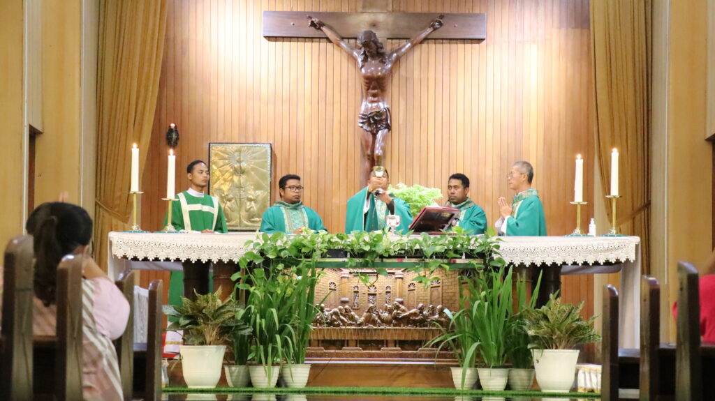 Kegiatan kemudian ditutup dengan Perayaan Ekaristi selebran yang dipimpin oleh RD Yulius Eko Priyambodo, sebagai moderator KMKI Dekenat Timur, sebagai selebran utama. Turut hadir dan konselebran dalam perayaan tersebut antara lain, RD Bonifasius Heribertus Beke, RD Dominikus Savio Tukiyo, RD Yosef Irianto Segu serta Diakon Fr. Theodorus Agung Yogatama. Dalam khotbah penutupan, Pastor Segu menyampaikan pesan mendalam kepada para animator KMKI bahwa “Animator bukanlah penghalang bagi anak-anak untuk bertemu Yesus, melainkan teman seperjalanan yang menuntun mereka semakin dekat kepada-Nya.” Pesan ini menjadi pengingat sekaligus peneguhan bagi para pendamping agar selalu hadir dengan hati yang rendah, sabar, dan penuh kasih dalam mendampingi anak-anak dan remaja dalam iman mereka.