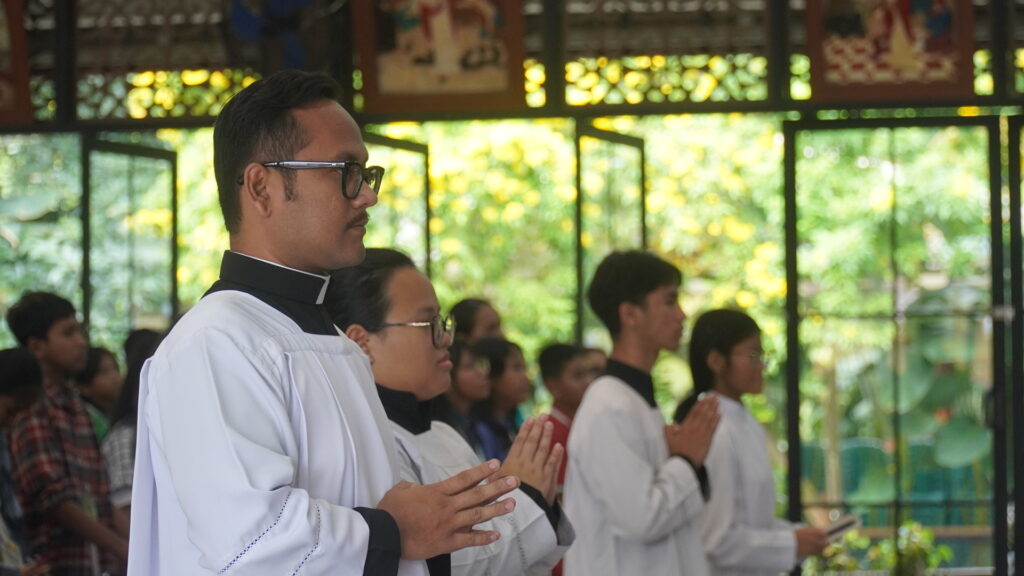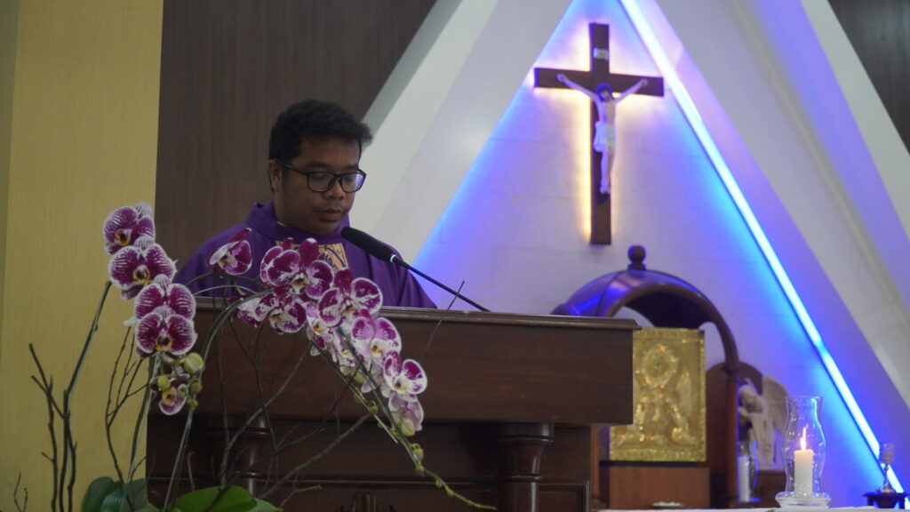 Dalam homilinya, RD Yosef Irianto Segu menegaskan pentingnya pembentukan karakter anak-anak TSOM.